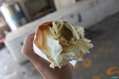 燒餅中間剪開再把這堆餡料包進去!!
